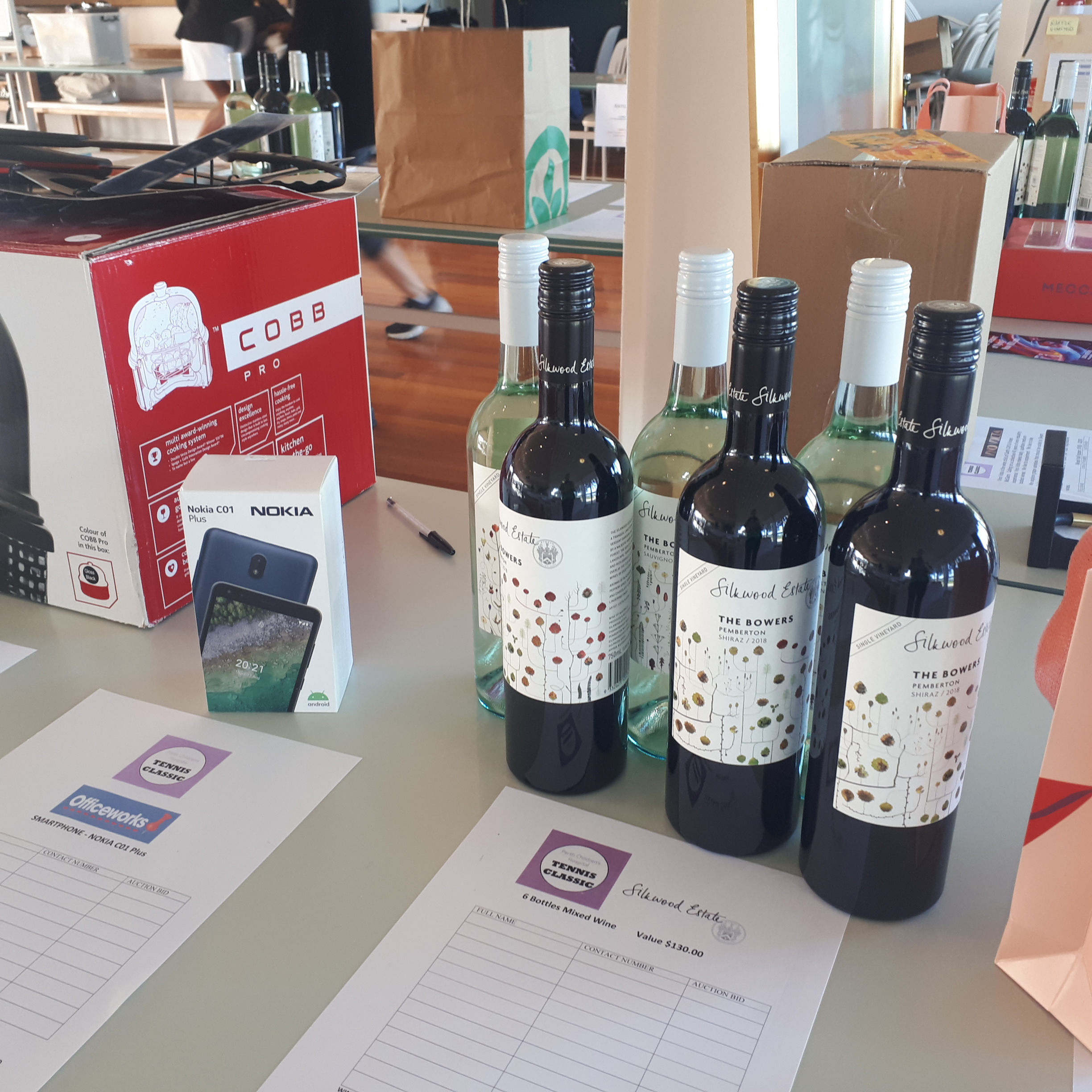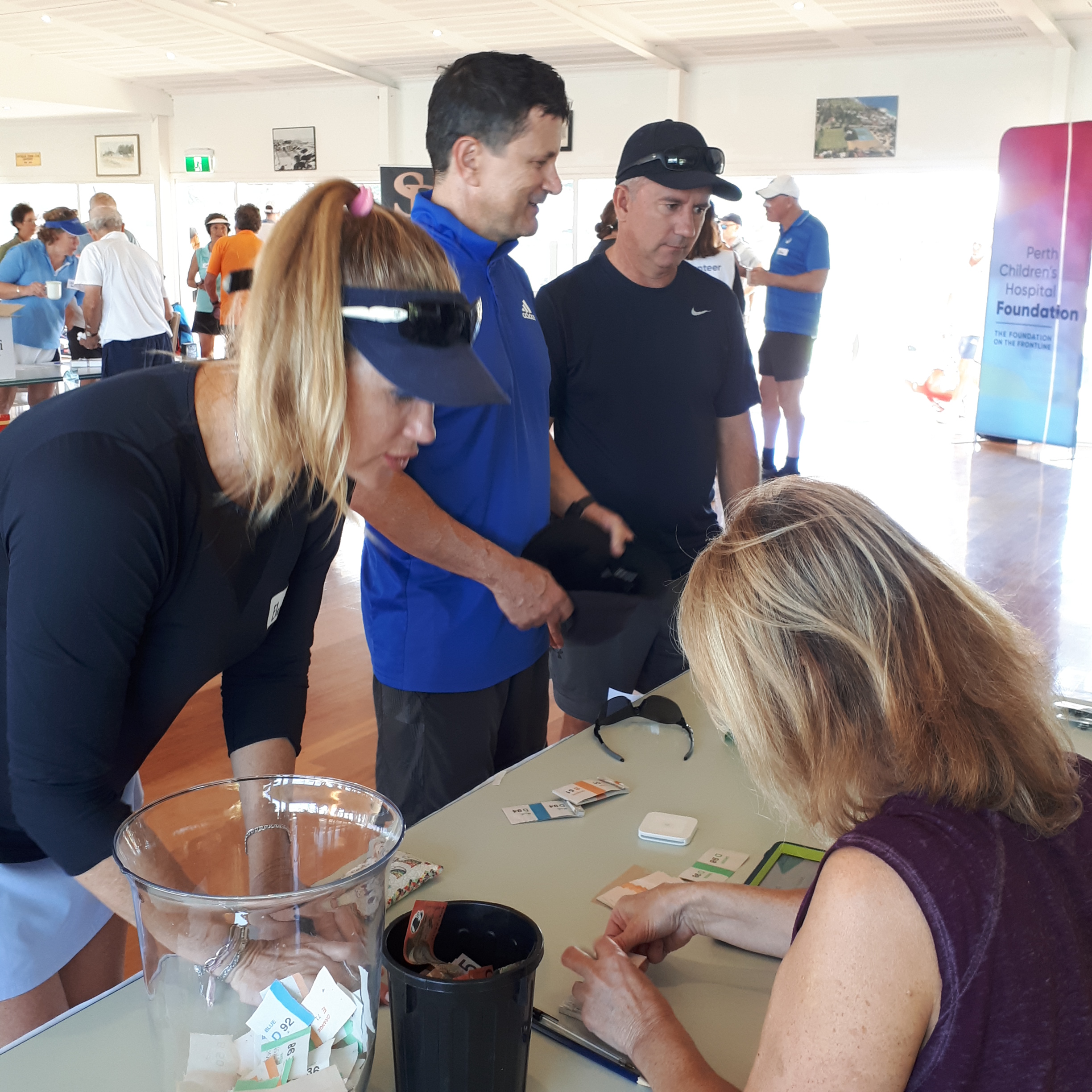 We are raising funds for the kids in Perth Children’s Hospital, and entry fees do not make up the largest portion of the funds collected. Most of our total comes from wonderfully significant cash donations and from the sale by silent auction of goods and services provided by our kind supporters. Some supporters have been very long-term over the history of these events. Between sets and at morning tea, our good-hearted players, supporters and volunteers alike all buy up raffle tickets most generously and wander the items on silent auction to outbid each other – all to the benefit of the kids.